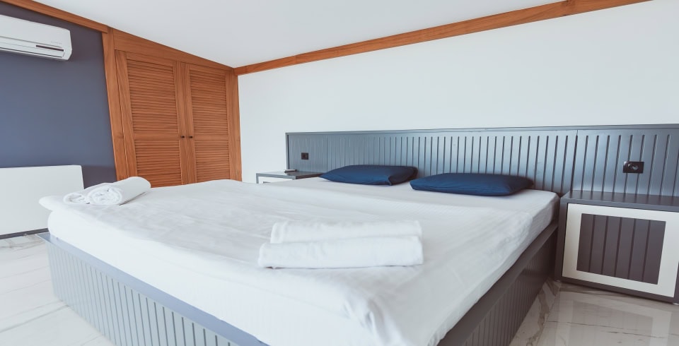 2. Yatak Odası: 1 adet çift kişilik yatak, elbise dolabı, makyaj masası, banyo, tuvalet ve klima yer almaktadır.