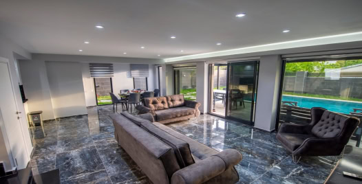 Salon: Özenle döşenmiş salon, modern koltuklar, 8 kişilik yemek masası, LCD TV ve klima bulunmaktadır.