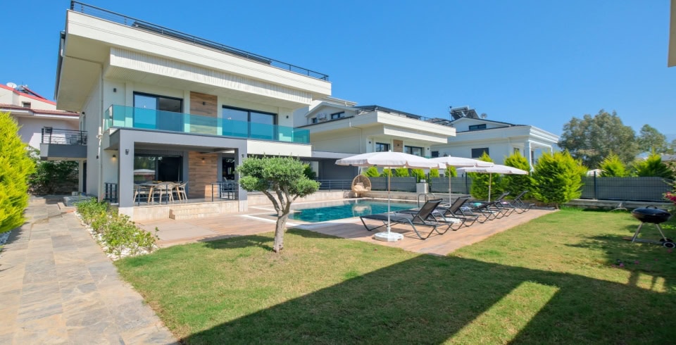 Bahçe : Bahçe içerisinde özel yüzme havuzu, şezlong, barbekü, yemek masası bulunmaktadır.