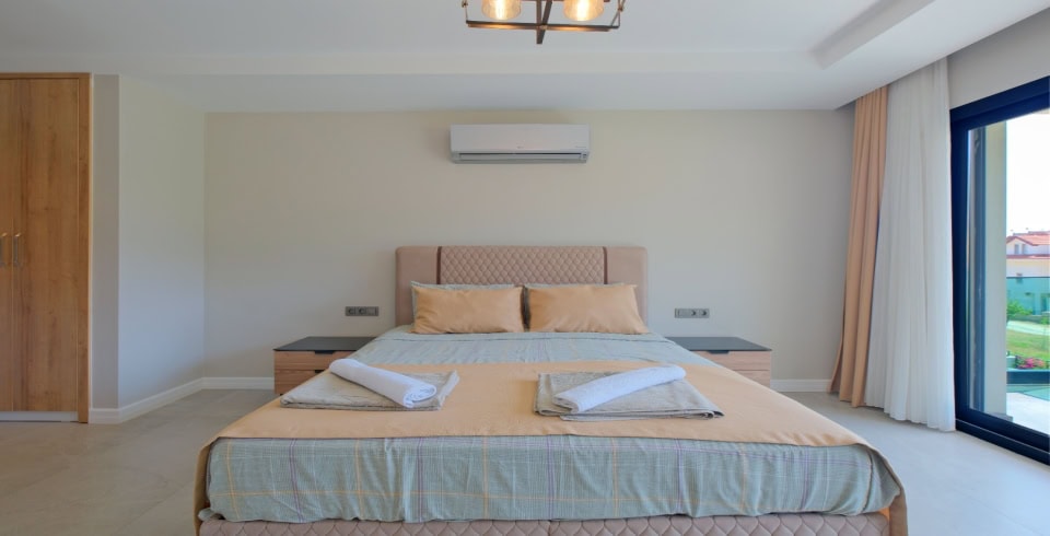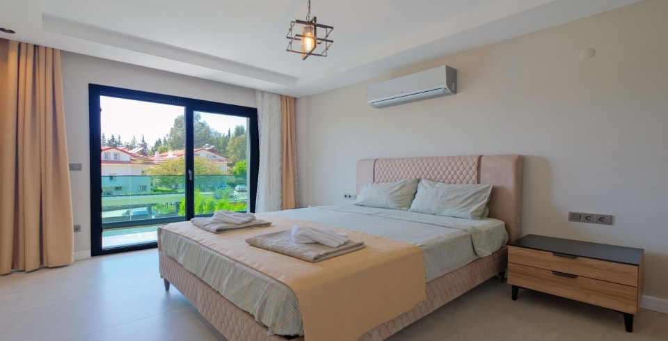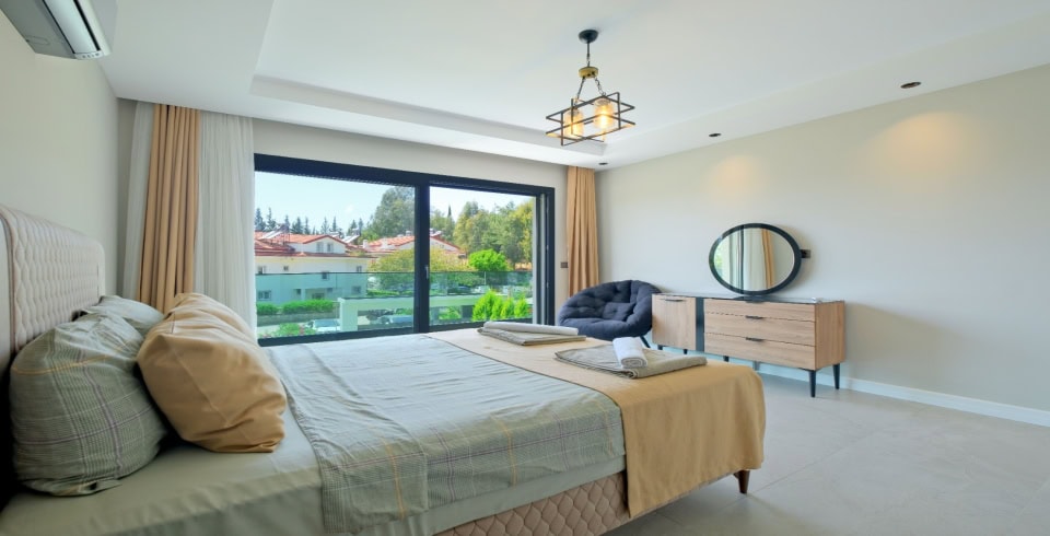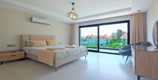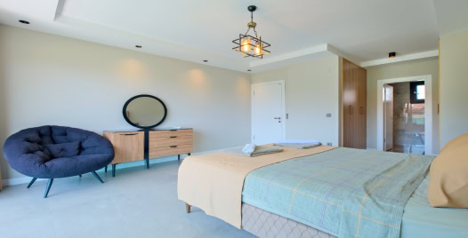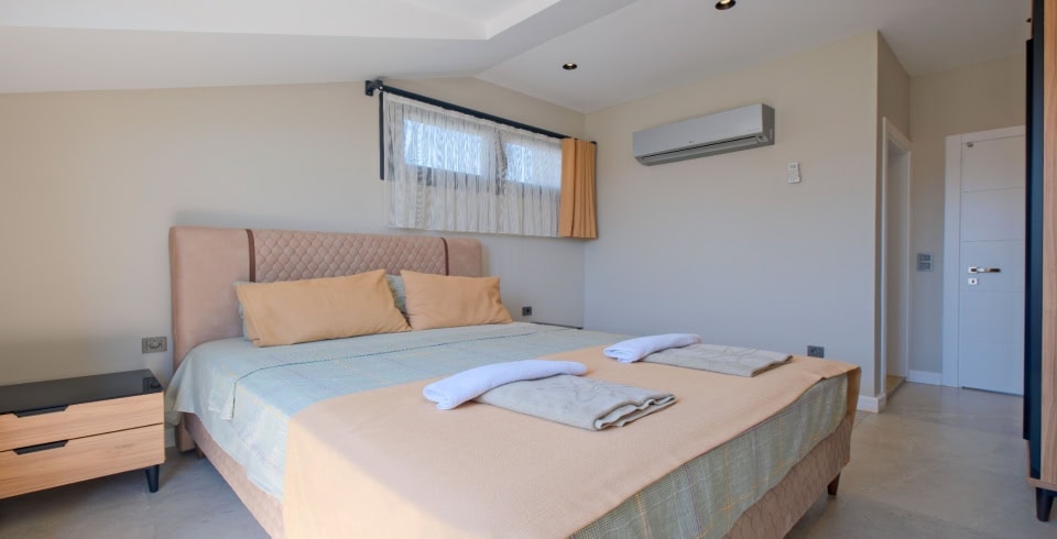 4. Yatak Odası : 1 adet çift kişilik yatak, klima, komodin, elbise dolabı, makyaj masası, banyo ve tuvalet bulunmaktadır.