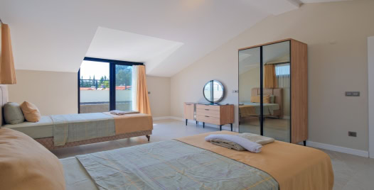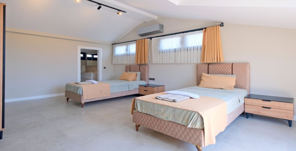 3. Yatak Odası : 2 adet tek kişilik yatak, klima, komodin, elbise dolabı, makyaj masası, banyo ve tuvalet bulunmaktadır.