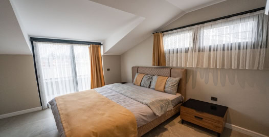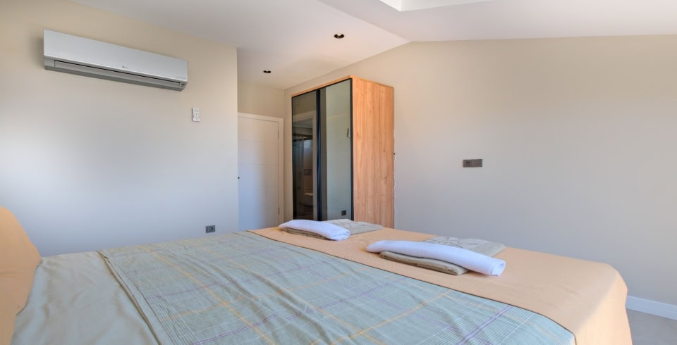 2. Yatak Odası : 1 adet çift kişilik yatak, klima, komodin, elbise dolabı, makyaj masası, banyo ve tuvalet bulunmaktadır.
