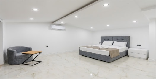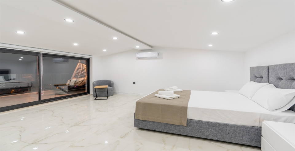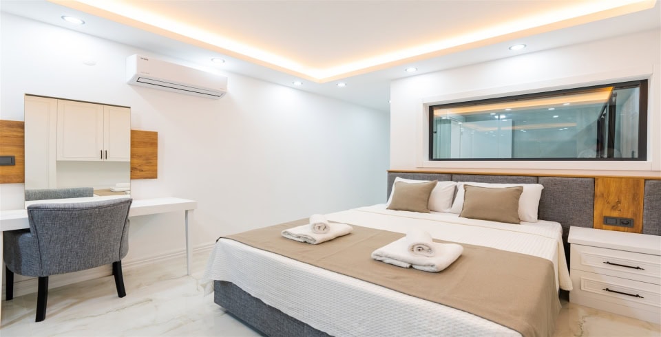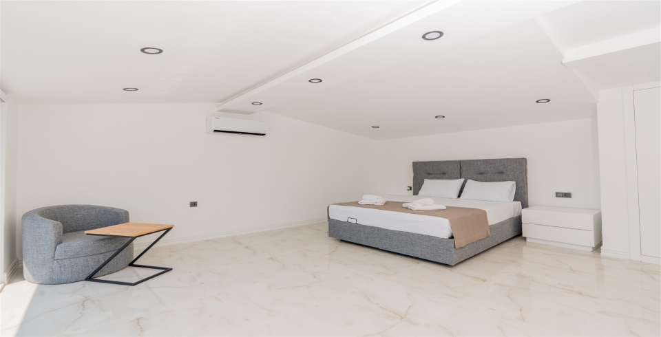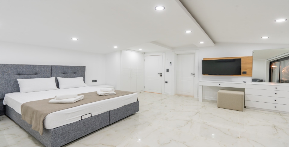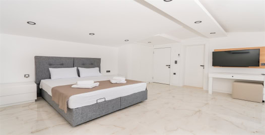 1. Yatak Odası : Çift kişilik bir adet yatak, Jakuzi, balkon, elbise dolabı, komodin, klima, banyo ve tuvalet bulunmaktadır.