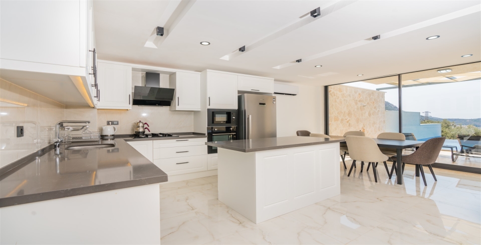 Mutfak: Villamızın mutfağında buzdolabı bulaşık makinası, çamaşır makinası, 4'lü ocak, ketıl, mikro dalga fırın, filtre kahve makinası yemek takımı bulunmaktadır.