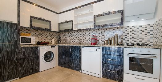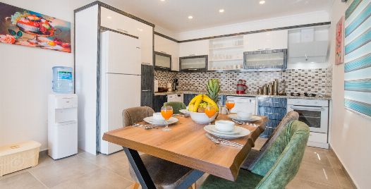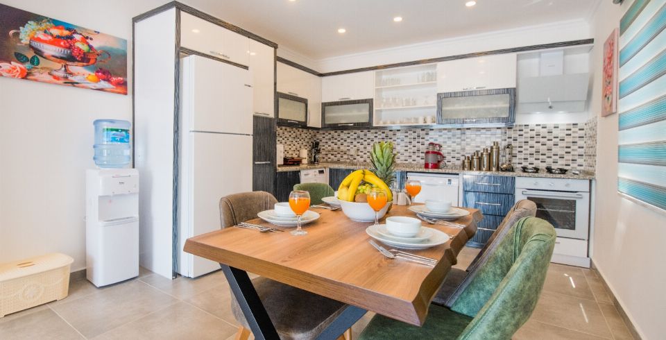 Mutfak : Villamızın geniş Amerikan mutfağı ile sizlere kendi evinizin mutfağı gibi hissettirecek. Ayrıca mutfakta klima, bulaşık makinası, buzdolabı, çamaşır makinası, mikrodalga fırın, tost makinası, ekmek kızartma, su ısıtıcısı, fırın, 4'lü ocak seti ve 4 kişilik geniş yemek masası ile tava tencere vb. mutfak araç gereçlerini kullanma fırsatını sizlere sunuyoruz.