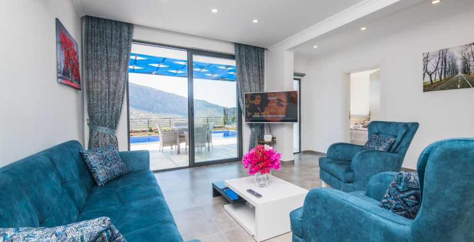 Salon : Villa Dirilişin salonunda sizi şık bir oturma grubu ile klima, televizyon, internet, uydu, koltuk, sehpa ile ferah bir salon bekliyor olacaktır. Havuz terasına çıkış yapılmaktadır.