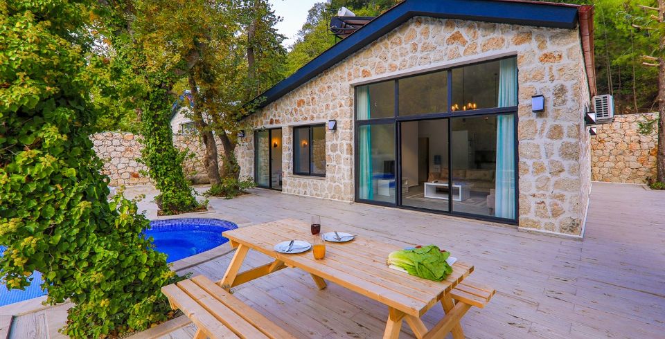 Villa Doğa 2, Kalkan Sarıbelen bölgesinde bulunuyor olup 4 kişilik kapasitesi ile 2 yatak odasına sahiptir. Doğa içerisinde ağaçlarla çevrili bu muhteşem taş dekorasyonlu villamız konsept olarak hizmet verir ve villamız 2019 yılında tamamlanmış olup yenidir. Doğa içerisinde ve etrafında ağaçlar olması nedeni ile villa korunaklıdır. Muhafazakâr aileler için uygun olan villamız aynı zamanda balayı çiftlerine de hitap eder. Bu tarz villalardan toplam 4 adet bulunuyor olup hepsi yan yanadır. Kalabalık arkadaş grupları ve kalabalık aileler içinde bu tarz villalarımız bulunuyor.