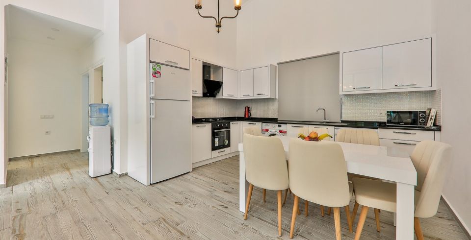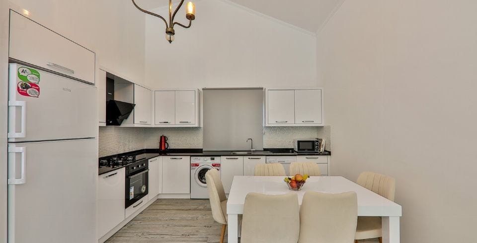 Mutfak : Villamızın geniş Amerikan mutfağı ile sizlere kendi evinizin mutfağı gibi hissettirecek. Ayrıca mutfakta klima, bulaşık makinası, buzdolabı, çamaşır makinası, mikrodalga fırın, tost makinası, ekmek kızartma, su ısıtıcısı, fırın, 4`lü ocak seti ve 6 kişilik geniş yemek masası ile tava tencere vb. mutfak araç gereçlerini kullanma fırsatını sizlere sunuyoruz.