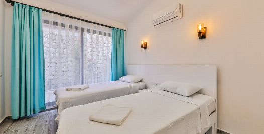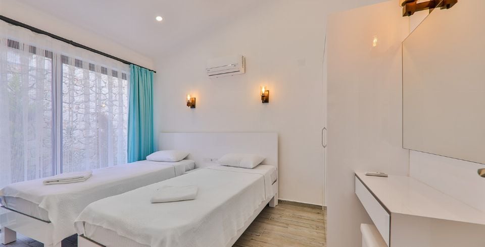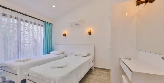 2. Yatak Odası : 2 adet tek kişilik yatak, klima, elbise dolabı, makyaj masası, komodin, banyo ve lavabo bulunmaktadır.