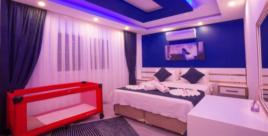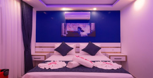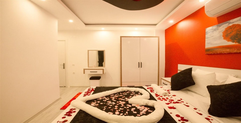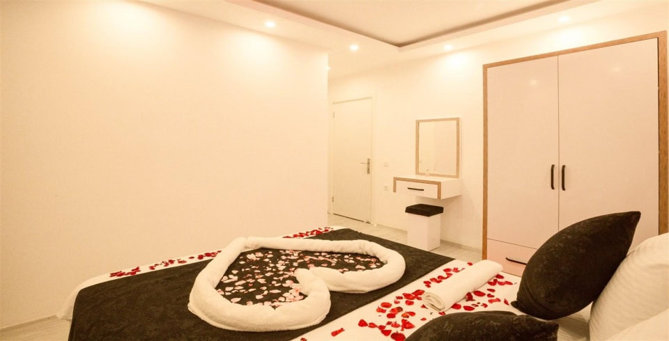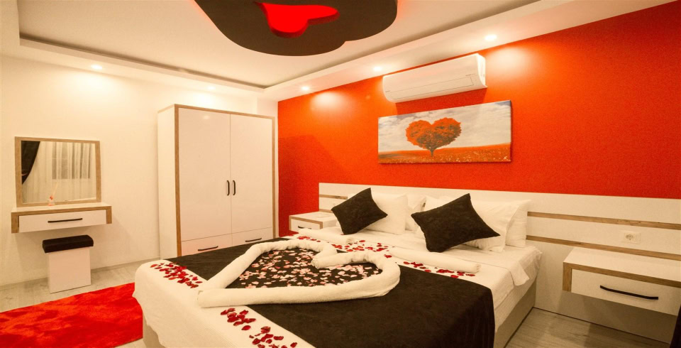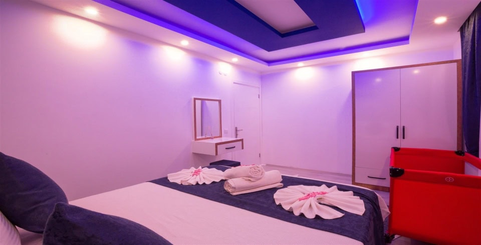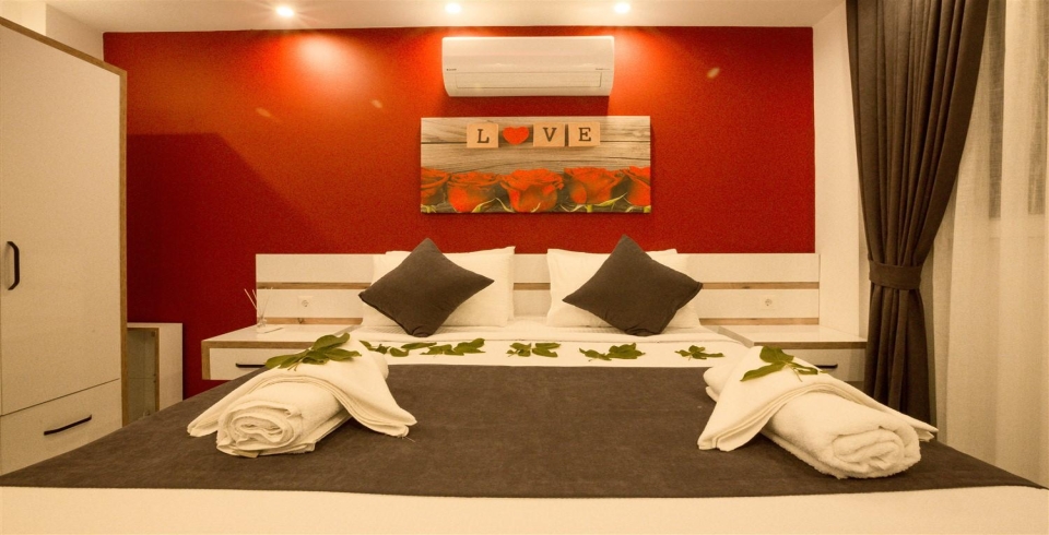 4. Yatak Odası : Çift kişilik bir adet yatak, balkon, elbise dolabı, komodin, klima, banyo ve tuvalet bulunmaktadır.