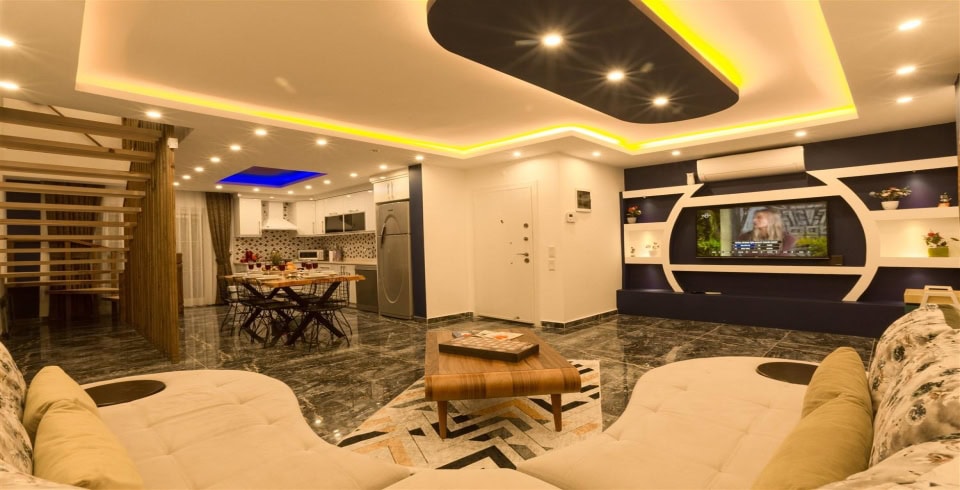 Salon : Sevdiklerinizle keyifli vakitler geçirebileceğiniz salonda konforlu oturma grubu, TV, DVD oynatıcı, uydu alıcısı, klima yer almaktadır. Salondan havuz terasına geçiş vardır.