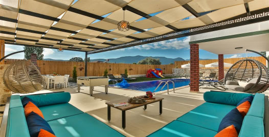 Villa Doğan, Kalkan Bezirgan Köyü'nde yer alan, geniş bahçesi ve 8 kişilik konaklama kapasitesiyle öne çıkan özel bir villadır. 4 yatak odalı villamız, kalabalık aileler ve arkadaş grupları için ideal bir seçenek sunar. Korunaklı bahçesinde özel yüzme havuzu, şezlonglar, salıncak, masa tenisi, langırt ve çocuklar için mini oyun alanı bulunmaktadır. Barbekü keyfi yapabileceğiniz alanıyla sevdiklerinizle unutulmaz anlar yaşayabilirsiniz. Doğa ile iç içe konumu ve mahremiyet sağlayan yapısıyla Villa Doğan, huzurlu ve sessiz bir tatil arayan misafirler için mükemmel bir tercihtir.