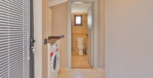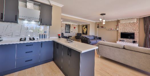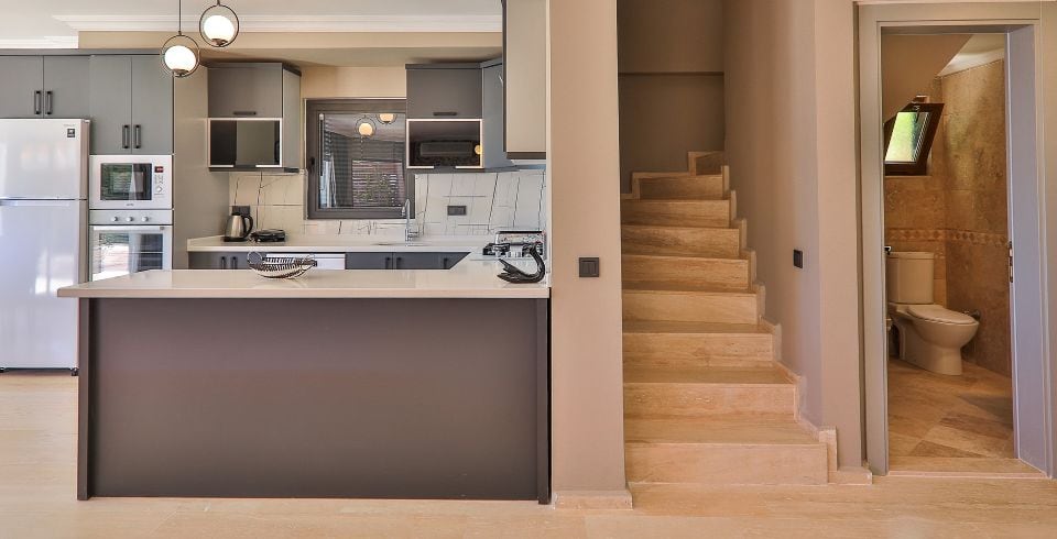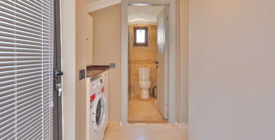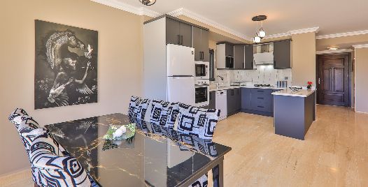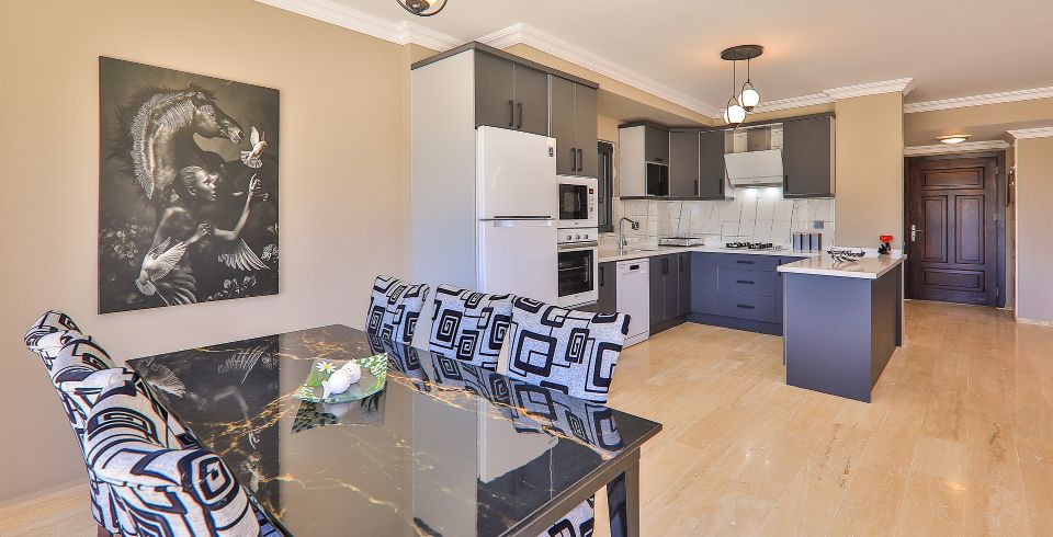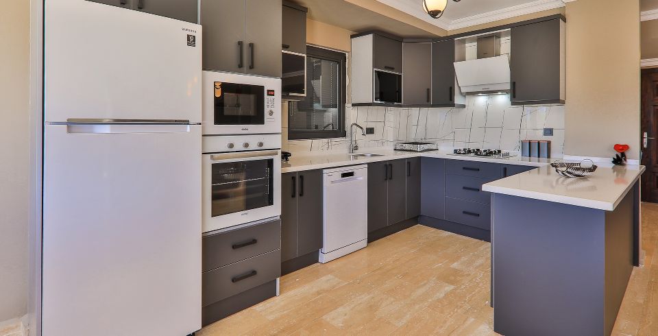 Mutfak : Modern Amerikan mutfakta buzdolabı, bulaşık makinesi, çamaşır makinesi, fırın, mikrodalga fırın, ekmek kızartma makinesi, 4 ’lü Ocak (ankastre), elektrikli su ısıtıcı, 6 kişilik yemek masası, yemek takımları, çatal ve bıçak takımları, tencere ve tava takımları, bardaklar bulunmaktadır.