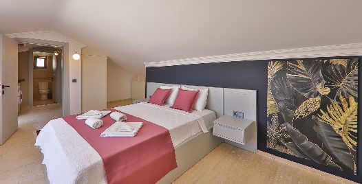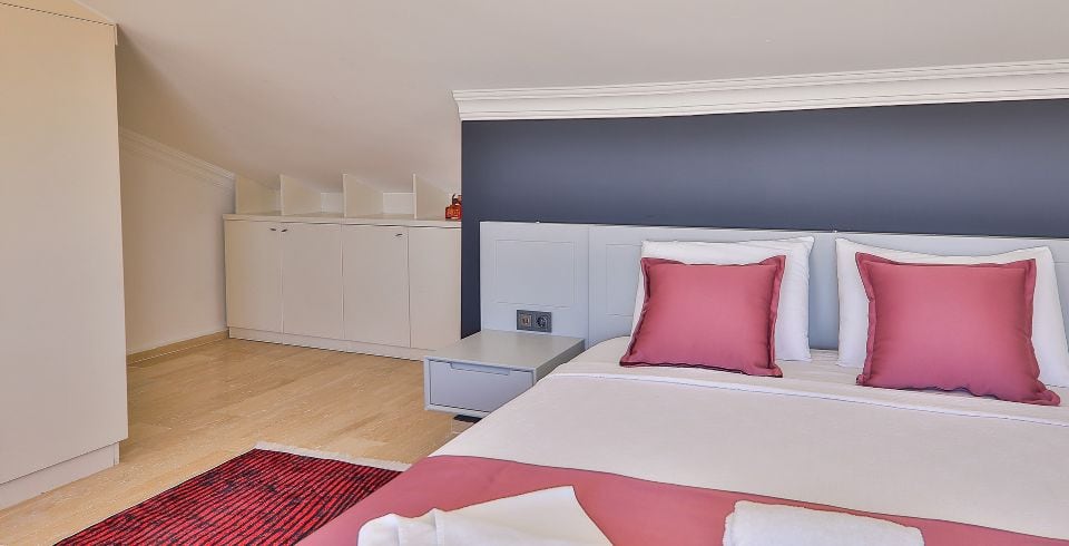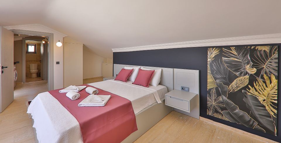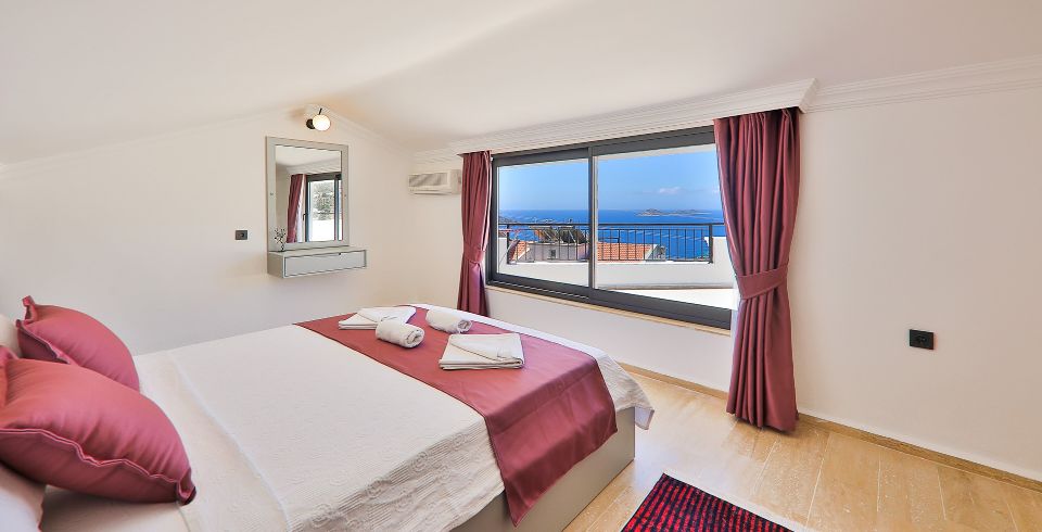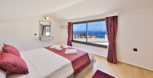 1. Yatak Odası : 1 adet çift kişilik yatak, elbise dolabı, komodin, klima, banyo ve tuvalet bulunmaktadır. Odamız deniz manzaralıdır.