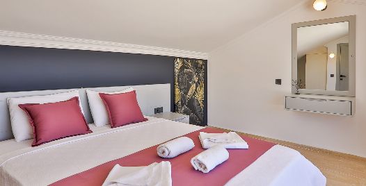 2. Yatak Odası : 1 adet çift kişilik yatak, komodin, makyaj masası, klima, elbise dolabı, balkon, banyo ve tuvalet bulunmaktadır. Odamız deniz manzaralıdır.