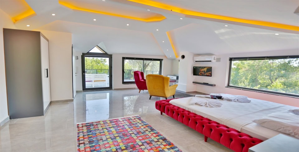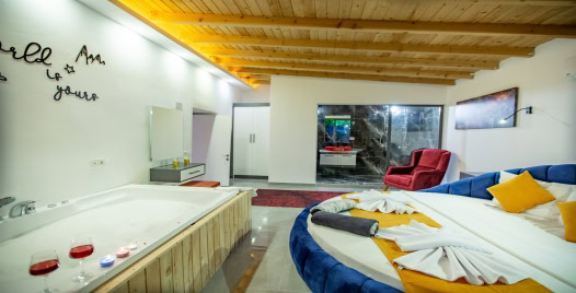 2.Yatak Odası: 1 adet çift kişilik yatak, klima, elbise dolabı, makyaj masası, komodin, jakuzi, banyo ve lavabo bulunmaktadır