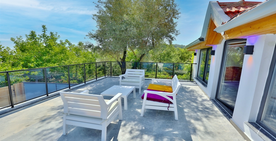 Havuz ve Bahçe : Bahçemiz korunaklı olup dışarıdan görünmemektedir. Villamızın havuz terasında şezlong, şemsiye, oturma grubu bulunmaktadır.