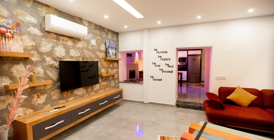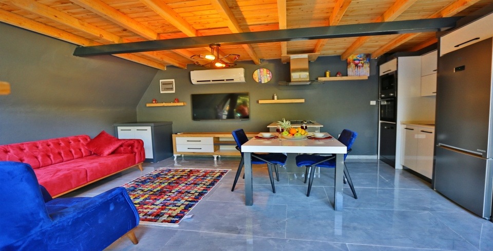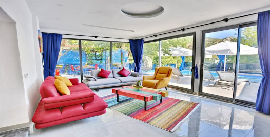 Salon : Havuz terasına direkt çıkışı olan salonumuzda LCD televizyon, uydu alıcı, modem, oturma grubu, yemek masası ve sandalyeler bulunmaktadır.