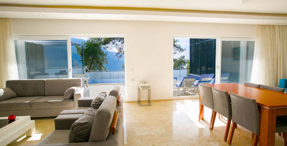 Salon : Villa Doruk 2’nin salonunda sizi şık bir oturma grubu ile klima, televizyon, internet, uydu, koltuk, sehpa ile ferah bir salon bekliyor olacaktır. Havuz terasına çıkış yapılmaktadır.