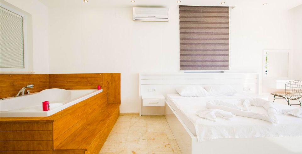 1. Yatak Odası : 1 adet çift kişilik yatak, klima, jakuzi, komodin, elbise dolabı, makyaj masası, banyo ve lavabo bulunmaktadır.