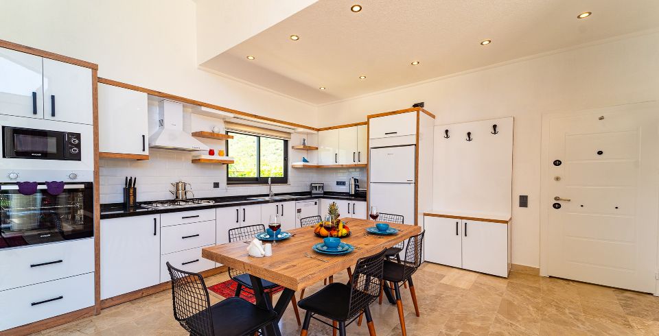 Mutfak: Villamızın mutfağında buzdolabı bulaşık makinası, çamaşır makinası, 4'lü ocak, ketıl, mikro dalga fırın, filtre kahve makinası yemek takımı bulunmaktadır.