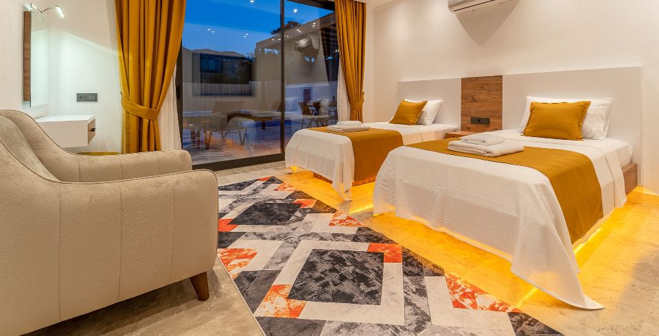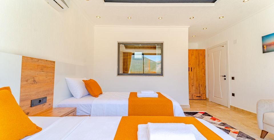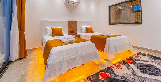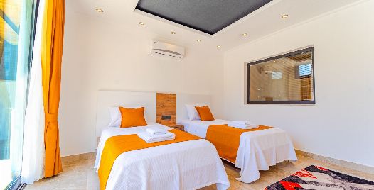 2. Yatak Odası: 2 adet tek kişilik yatak, klima, komodin, elbise dolabı, makyaj masası banyo ve tuvalet bulunmaktadır.