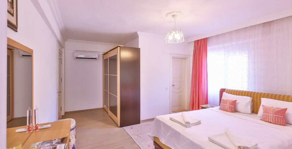 3. Yatak Odası : Çift kişilik yatak, klima, gardırop, komodin, ve ortak kullanım banyo- wc yer almaktadır.