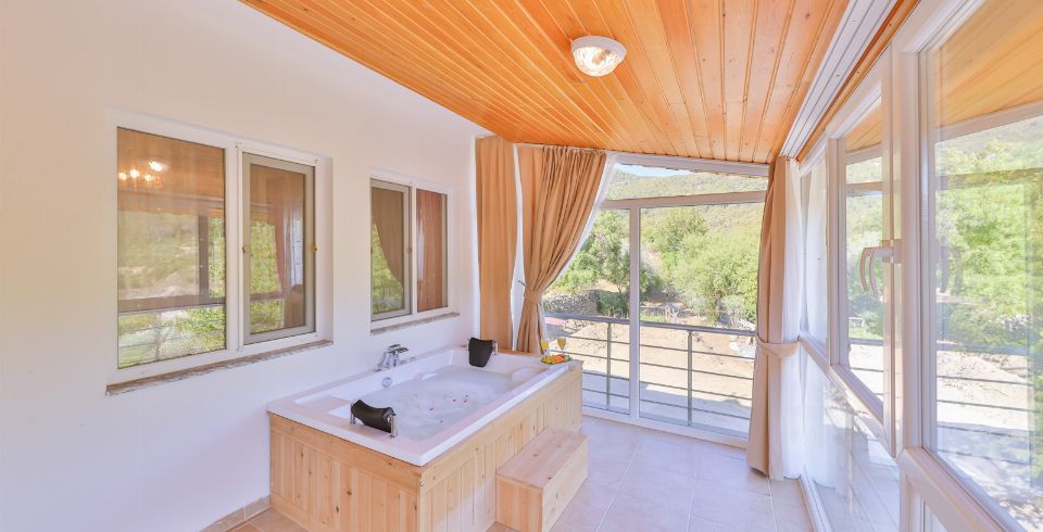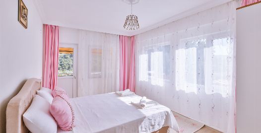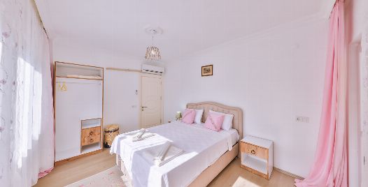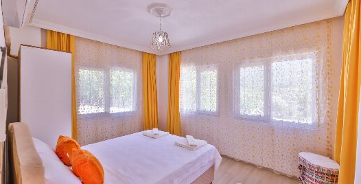 1. Yatak Odası : Süit yatak odası çift kişilik konfor yatak, jakuzi, klima, gardırop, komodin, ve banyo- wc yer almaktadır.