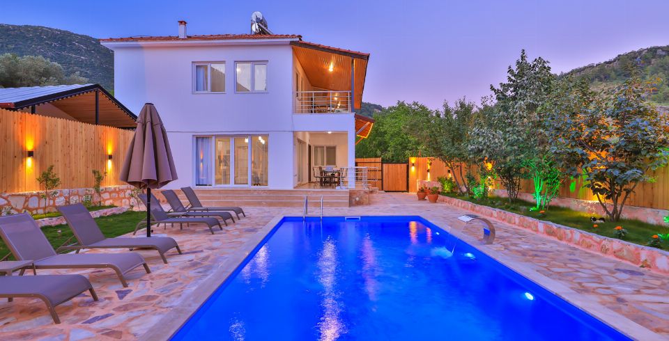 Villamız Kalkan Hacıoğlan bölgesinde bulunmaktadır. Doğa içerisinde konumlanan muhafazakar villa arkadaş gurupları ve kalabalık aileler için oldukça uygundur. 5 yatak odalı 10 kişilik kapasiteye sahiptir. Konforunuz için özenle dizayn edilmiş olup bir tatil için ihtiyacınız olan her detayı barındırmaktadır. Muhteşem bir dağ manzarasına sahip olup , salon bölümünden havuz terasına çıkış yapılmaktadır. Sizin için tatil seçeneklerinden bir tanesi olup eğer arkadaş guruplarınla beraber yan yana tatil yapmak isterseniz. hemen yanında Villa Daffy bulunmaktadır.