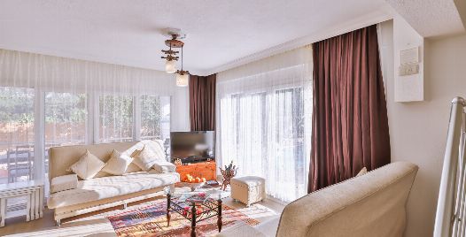 Salon : Salonda klima uydu alıcı, TV, oturma grubu, lavabo yer almaktadır. Salon havuz katındadır. En üst katta dinlenmek ve güneşlenmek için çok geniş bir seyir terası daha vardır. Bu alanda da oturma gurubu ,masa ve sandalye bulunur.