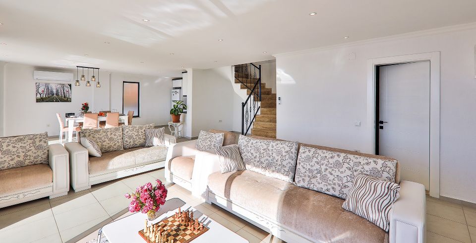 Salon : Villa Dream House’un salonunda sizi şık bir oturma grubu ile klima, televizyon, internet, uydu, koltuk, sehpa ile ferah bir salon bekliyor olacaktır. Havuz terasına çıkış yapılmaktadır.