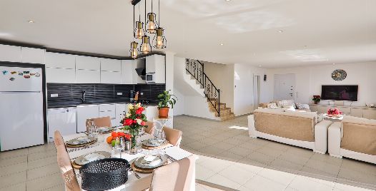 Mutfak : Villamızın geniş Amerikan mutfağı ile sizlere kendi evinizin mutfağı gibi hissettirecek. Ayrıca mutfakta klima, bulaşık makinası, buzdolabı, çamaşır makinası, mikrodalga fırın, tost makinası, ekmek kızartma, su ısıtıcısı, fırın, 4`lü ocak seti ve 6 kişilik geniş yemek masası ile tava tencere vb. mutfak araç gereçlerini kullanma fırsatını sizlere sunuyoruz.