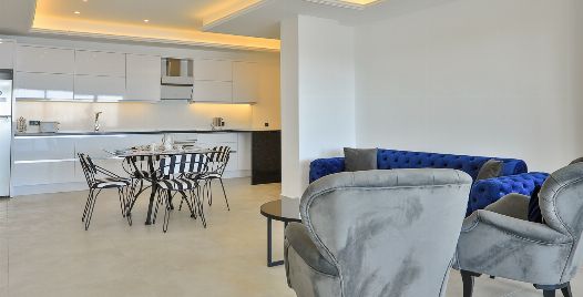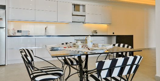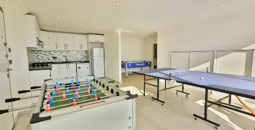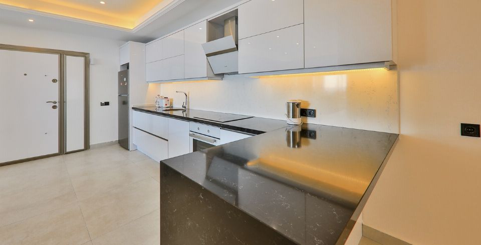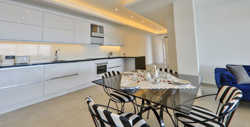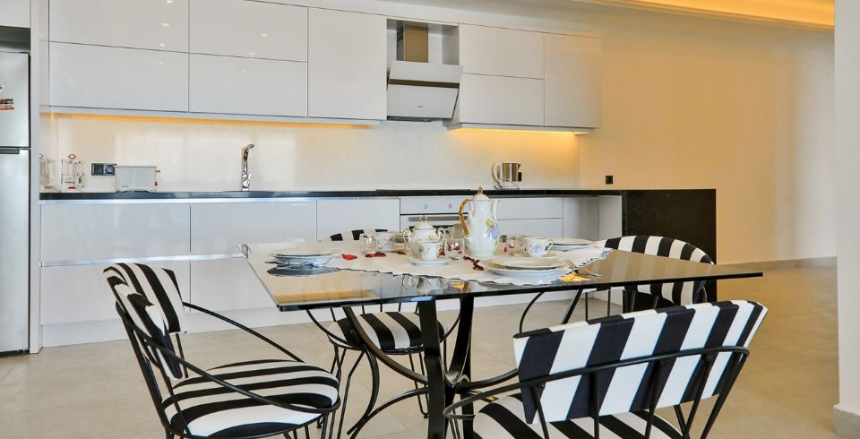 Mutfak : Modern Amerikan mutfak içerisinde buzdolabı, bulaşık makinası, fırın, ocak, mikrodalga fırın, tost makinası, yemek masası, yemek takımları, çatal ve bıçak takımları, tencere ve tava takımları, bardaklar bulunmaktadır.