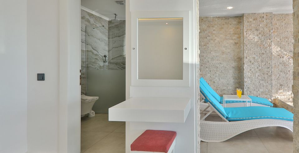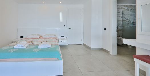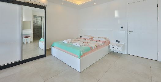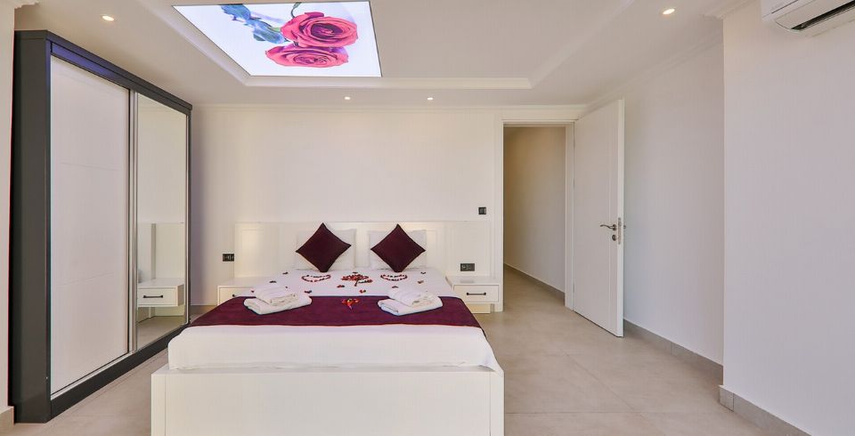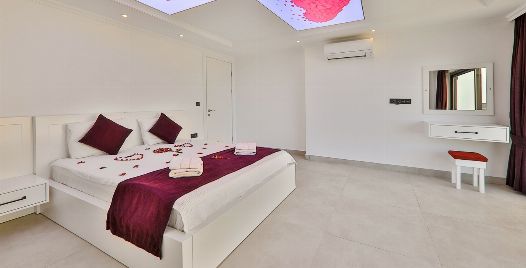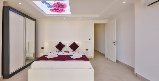 1. Yatak Odası : 1 adet çift kişilik yatak, klima, komodin, elbise dolabı, makyaj masası, ısıtma havuzu, sauna balkon, banyo ve tuvalet bulunmaktadır.