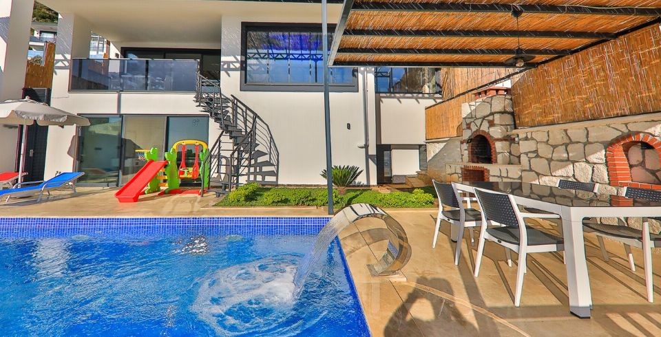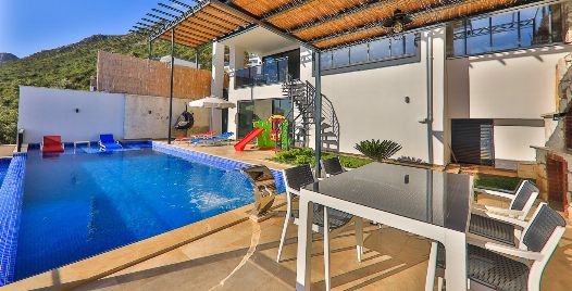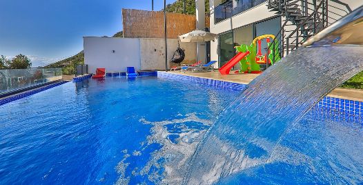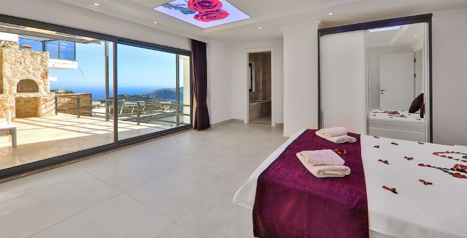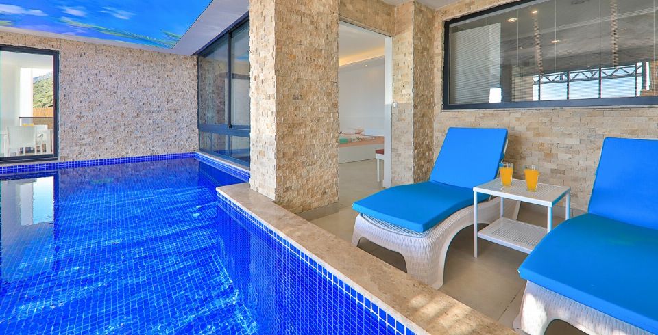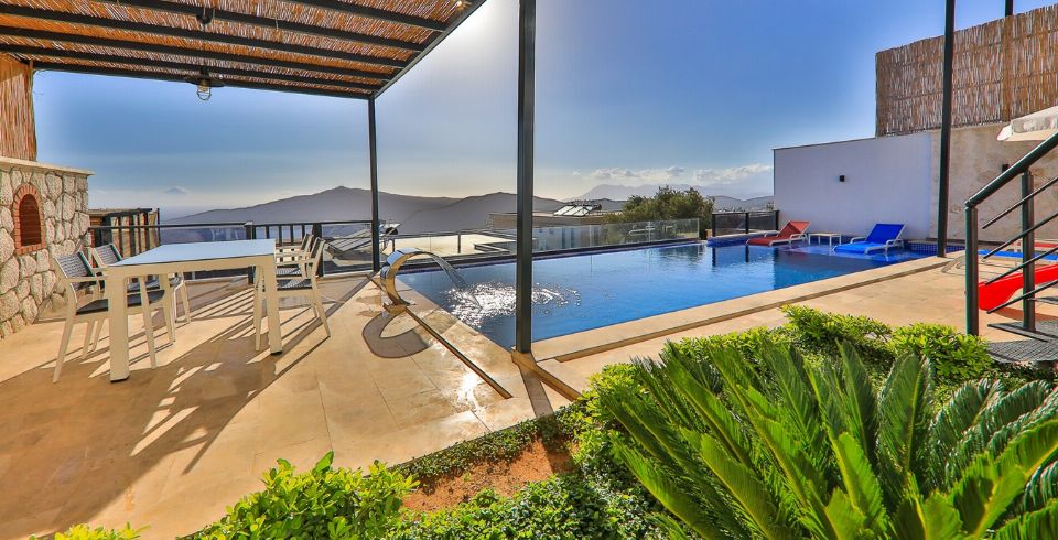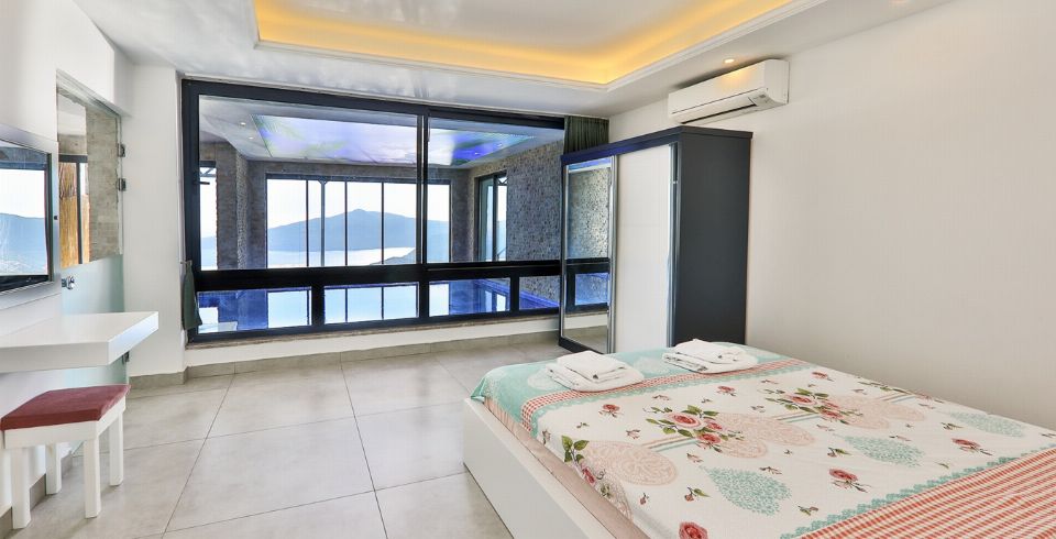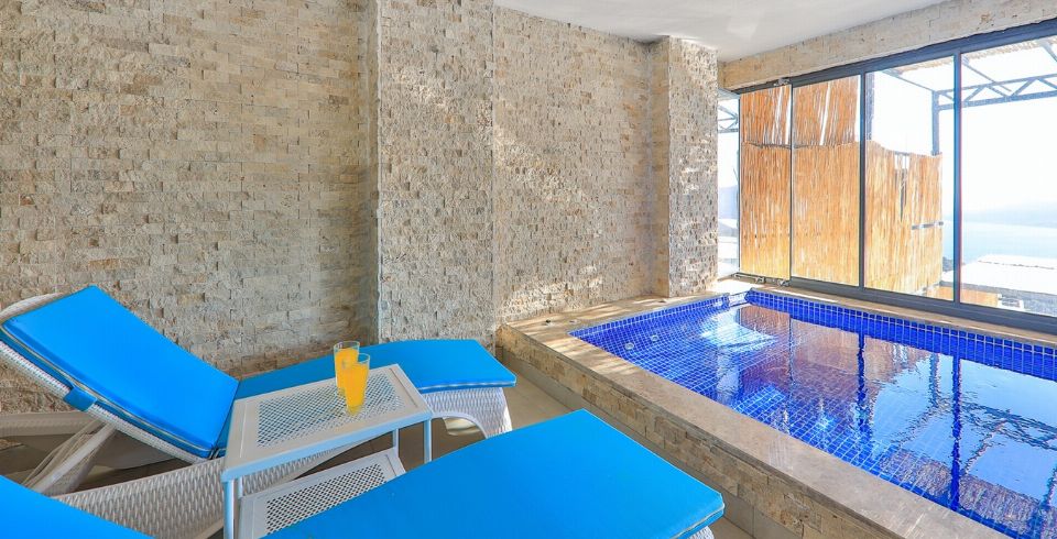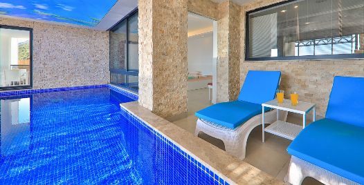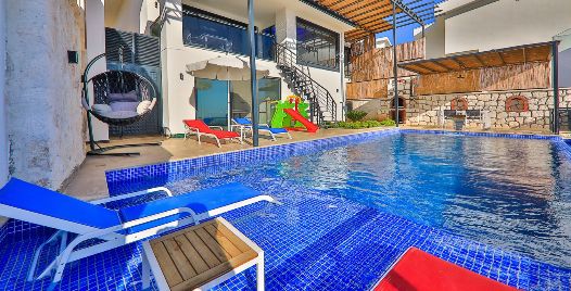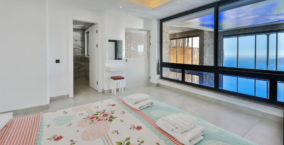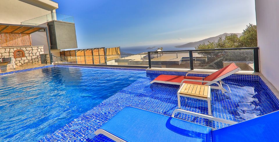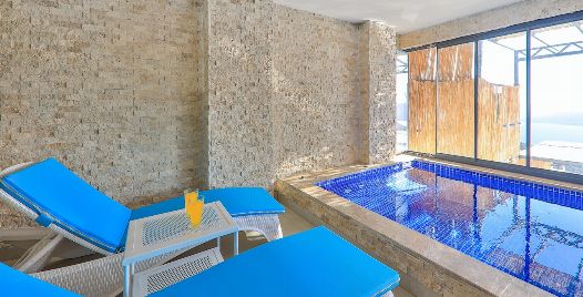 Kalkan Kördere bölgesinde full deniz manzarasına sahip oldukça keyifle döşenmiş Lüks muhafazakar kiralık villamızdır. Villamız geniş havuz terası ve salon mutfağı ile diğer kiralık villa seçeneklerimiz arasında öne çıkan özelliklerindendir. Villamızın yatak odası içerisinde kış aylarına uygun dizayn edilmiş ısıtmalı kapalı havuzu ve sauna hamam bulunmaktadır. Ancak iç havuzun ısıtma sistemi kış aylarında açılmakta olup kullanıma sunulmaktadır. Diğer aylar için ise normal havuz olarak kullanım sağlanmaktadır. Villamızdan Kalkan Merkeze araç ile 8-10 dk. arasında ulaşım sağlanmaktadır. Villamızın 2 yatak odalı 4 kişilik kapasiteye sahiptir havuz terası katında oyun salonu bulunmaktadır.