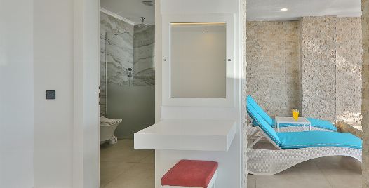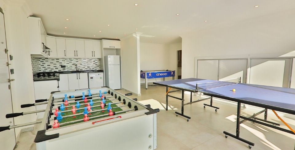 Salon : Salon içerisinde oturma grubu, TV, klima, sehpa bulunmaktadır. Havuz terasına çıkış yapılabilmektedir.