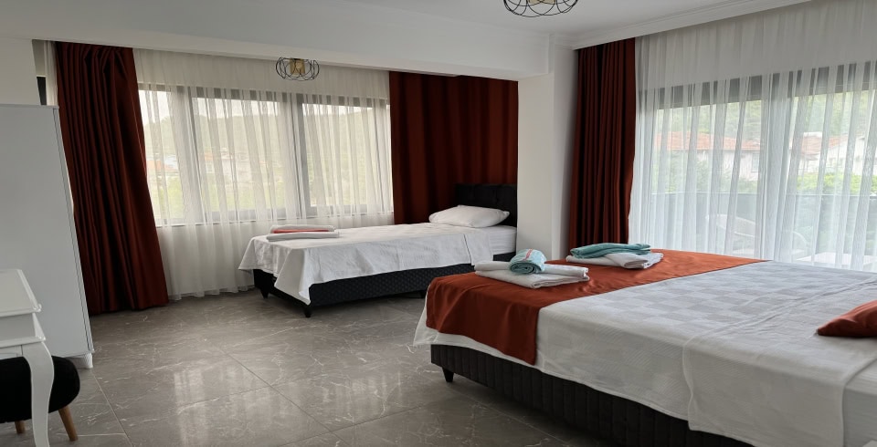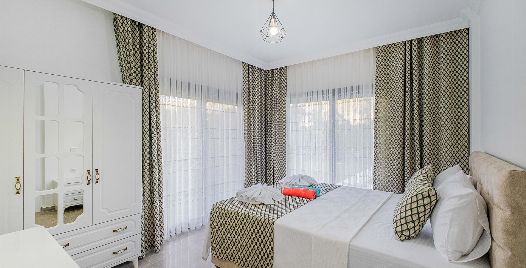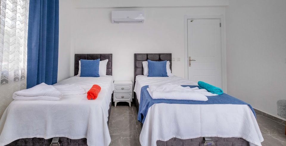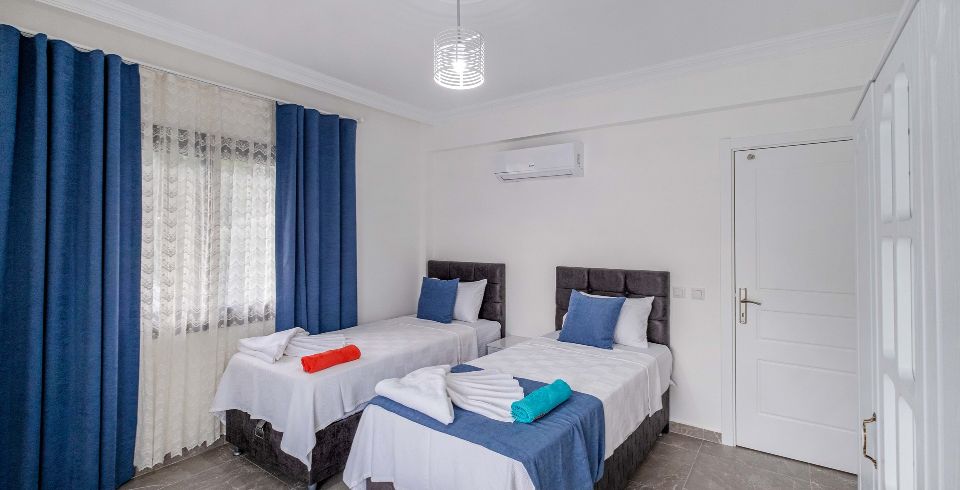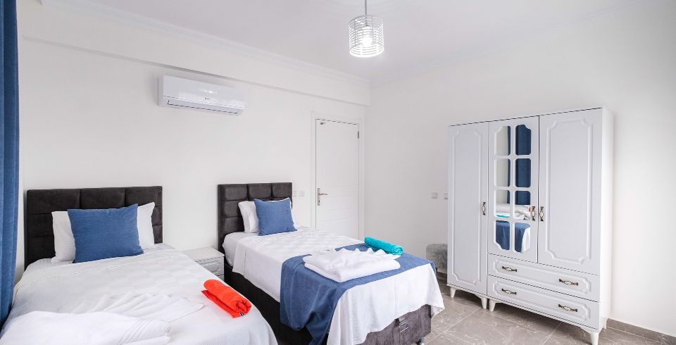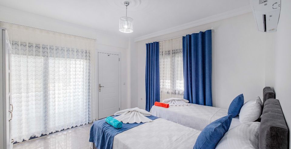 4. Yatak Odası: 2 adet tek kişilik yatak komodin, elbise dolabı, makyaj masası, banyo ve tuvalet bulunmaktadır.