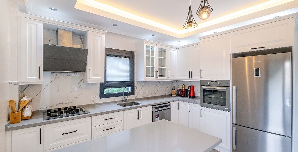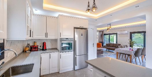 Mutfak: Villamızın mutfağında buzdolabı bulaşık makinası, çamaşır makinası, 4'lü ocak, ketıl, mikro dalga fırın, filtre kahve makinası yemek takımı bulunmaktadır.