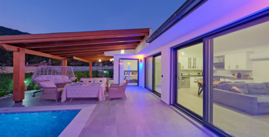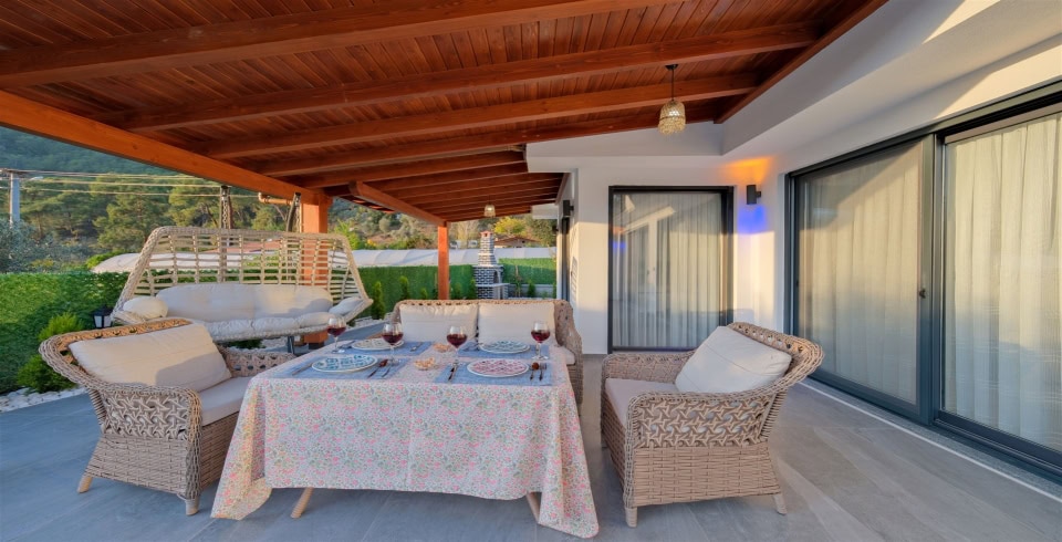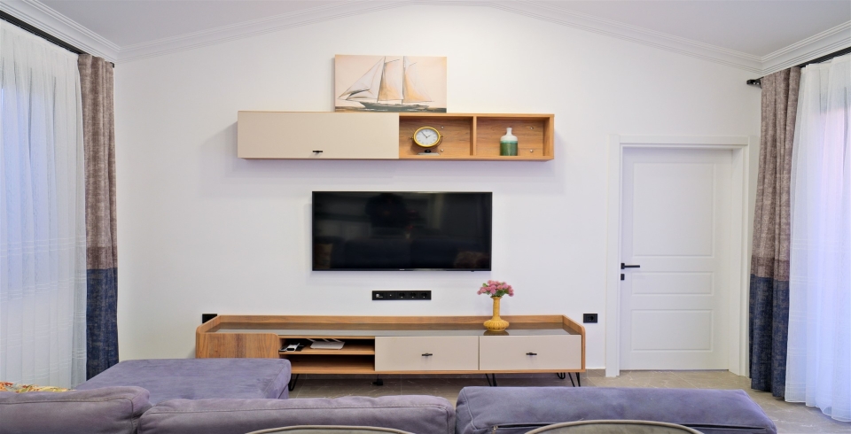Salon : Villa salonunda oturma grubu, TV, internet, klima, yemek masası, sehpa bulunmaktadır.