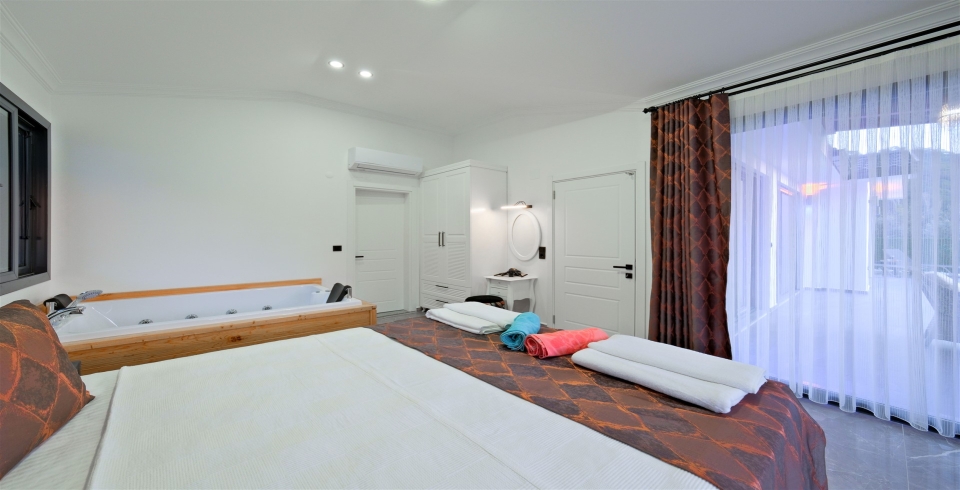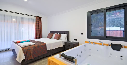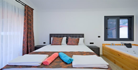 1. Yatak Odası : Çift kişilik yatak, klima, komodin, jakuzi, makyaj masası, banyo ve lavabo bulunmaktadır.