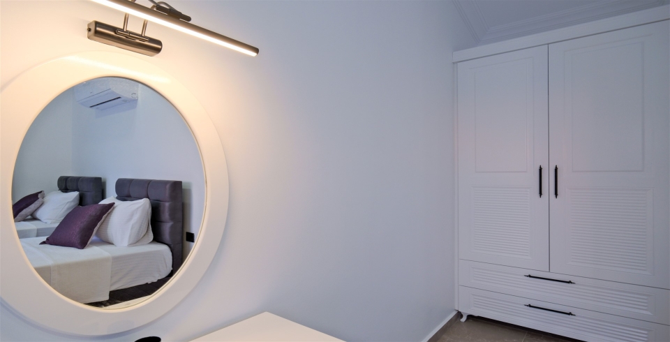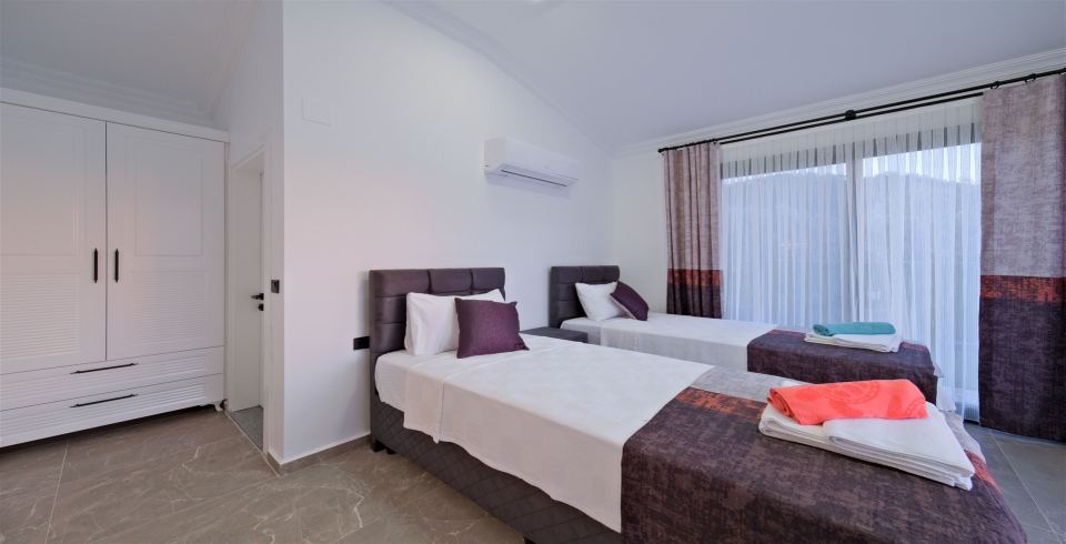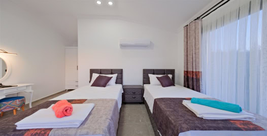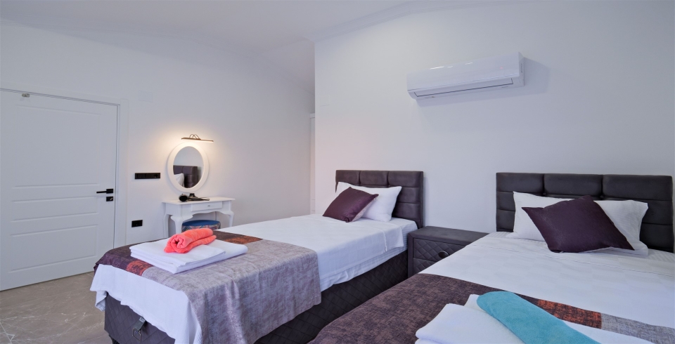2. Yatak Odası : 2 adet tek kişilik yatak, komodin, klima, makyaj masası, banyo ve lavabo bulunmaktadır.