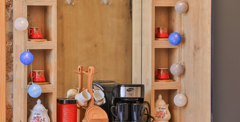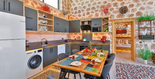 Mutfak: Villamızın mutfağında buzdolabı bulaşık makinası, çamaşır makinası, 4'lü ocak, ketıl, mikro dalga fırın, filtre kahve makinası 4 kişilik yemek takımı bulunmaktadır.