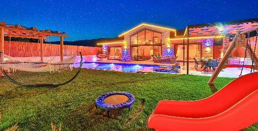 Havuz ve Bahçe: Havuz ve bahçesi korunaklı olup dışarıdan gözükmemektedir. Özel yüzme havuzu, şezlong, şemsiye, oyun parkı, salıncak, hamak , trambolin ,yemek masası ve barbekü bulunmaktadır.