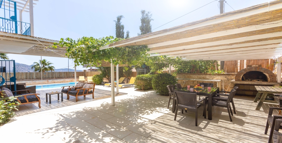 Bahçe : Villamızın bahçesinde özel yüzme havuzu, güneşlenmeniz için 6 adet şezlong, güneşlenme terası, 8 kişilik masa, oturma grubu, mangal keyfiniz için barbekü, güneş şemsiyesi bulunmaktadır.
