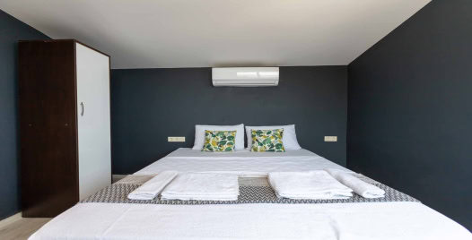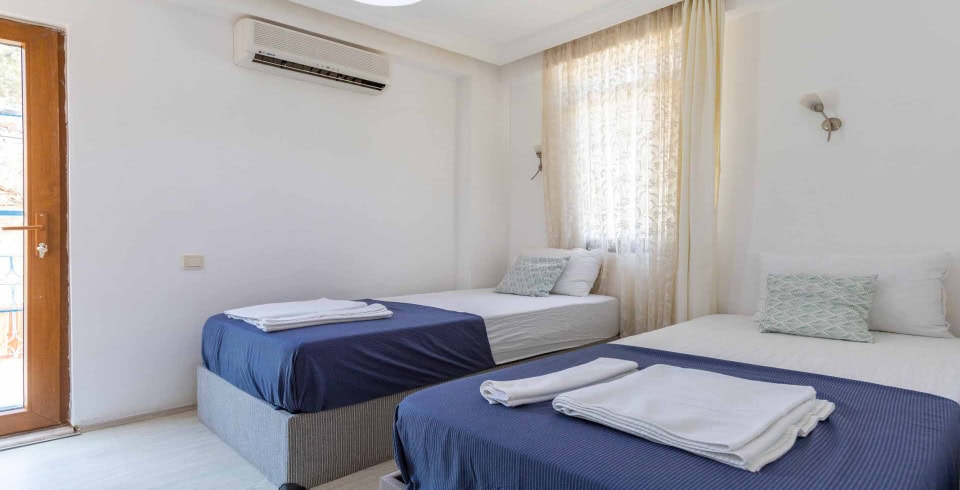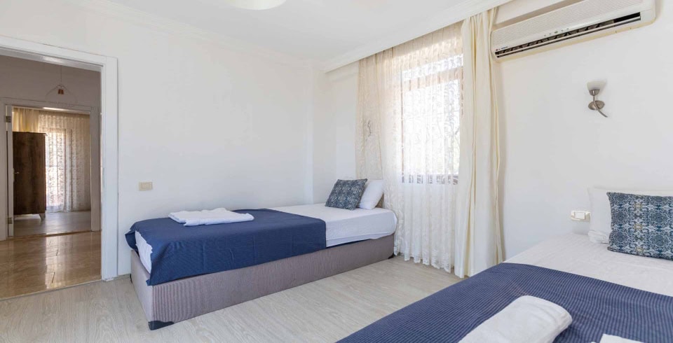 2. Yatak Odası : 2 adet tek kişilik yatak, klima, komodin, elbise dolabı, makyaj masası, banyo ve lavabo bulunmaktadır.