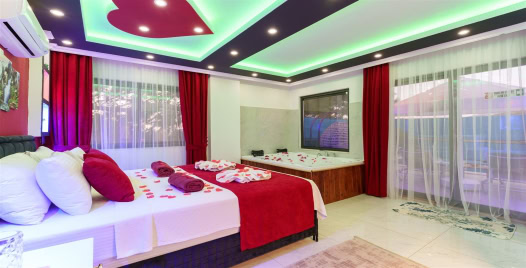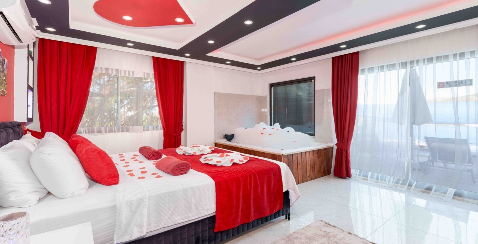 1. Yatak Odası : 1 adet çift kişilik yatak, klima,TV,jakuzi, komodin, elbise dolabı bulunmaktadır.
