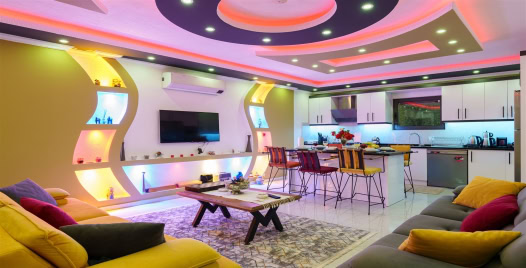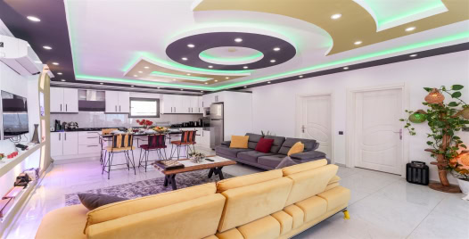 Salon : Salon içerisinde oturma grubu, TV, klima, sehpa,banyo ve tuvalet bulunmaktadır. Havuz terasına çıkış yapılabilmektedir.
