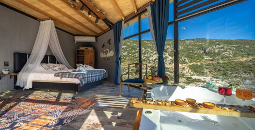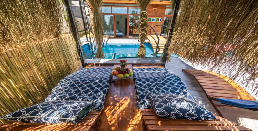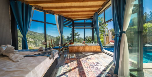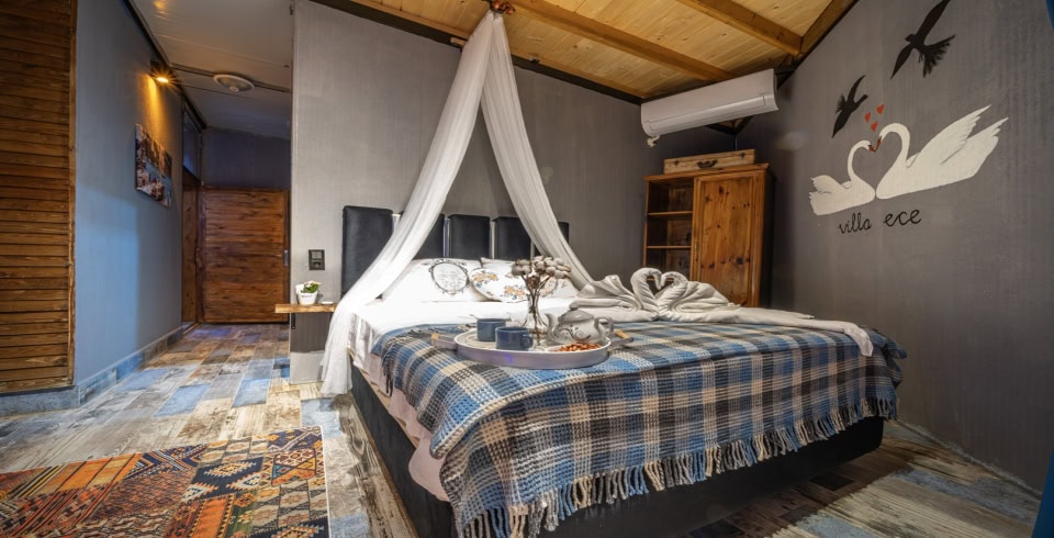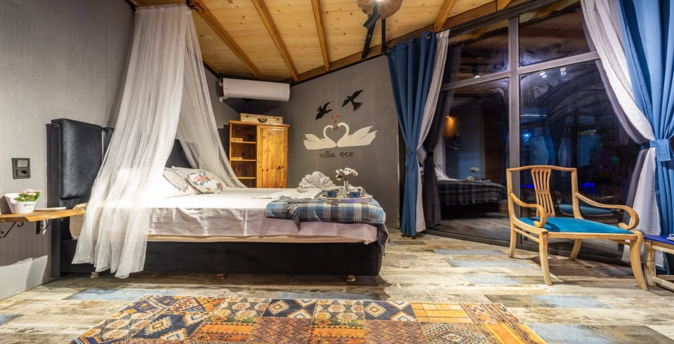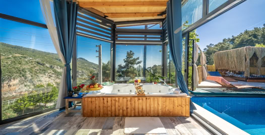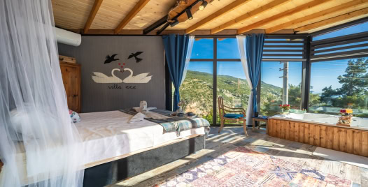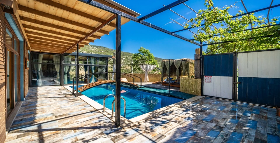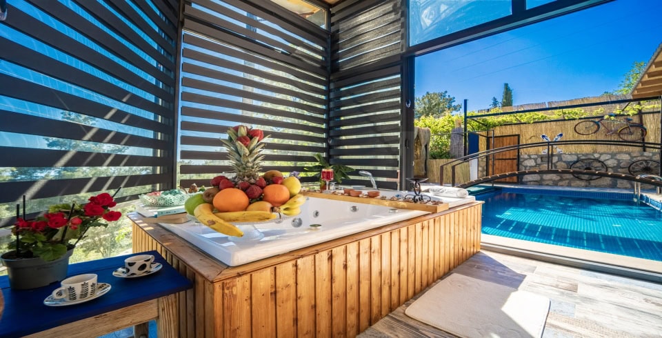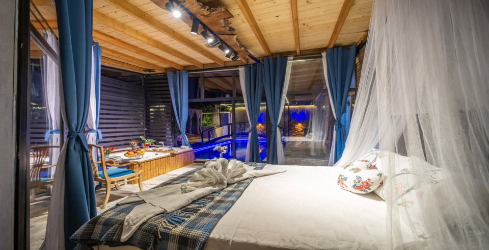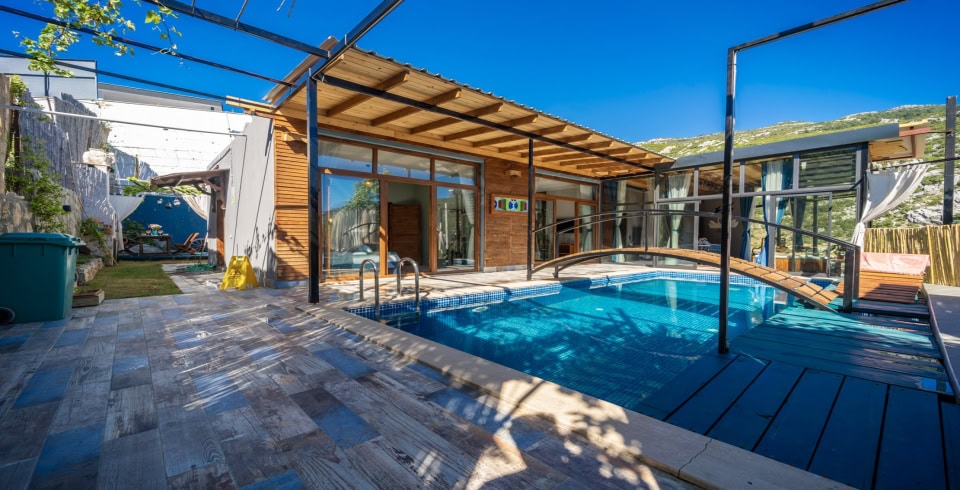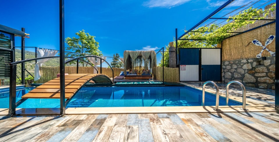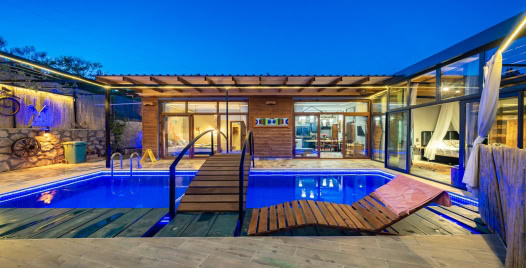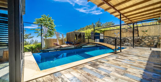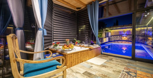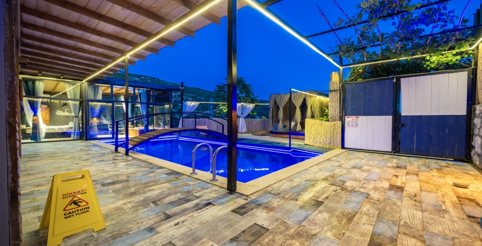 Kalkan İslamlar bölgesinde bulunan Villa Ece 40, özellikle balayı villası olarak dizayn edildiği için 2 yatak odalı ve çok şık bir jakuzi ile çiftlerimizin harika vakit geçireceği mini bir villadır. Havai havasında olan dış tasarım ile doğa içinde huzur bulabileceğiniz bu villamız, tercihe bağlı korunaklı havuz terasında eşinizle jakuzi keyfi sürebilirsiniz. Özel yüzme havuzumuz dışardan kesinlikle görünmemekte olup muhafazakâr eşler için özel düşünülmüştür. Sizde bu villa ile harika vakitler geçirebilir ve kuş sesleri eşliğinde tatilinizi gerçekleştirebilirsiniz. Markete 600 metre, restoranda 100 metre havalimanına ise 125 kilometredir.