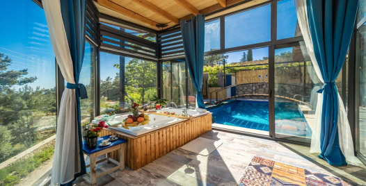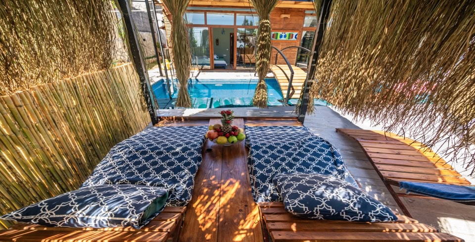 Havuz ve Bahçe: Muhafazakar özel yüzme havuzu, şezlong, şemsiye, oturma grubu ve barbekü alanı mevcuttur.