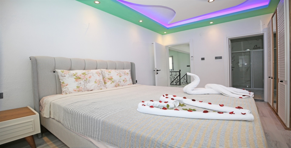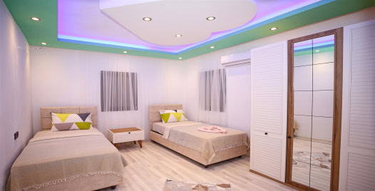 2. Yatak Odası : 2 adet tek kişilik yatak, elbise dolabı, makyaj masası, klima, banyo ve tuvalet bulunmaktadır.